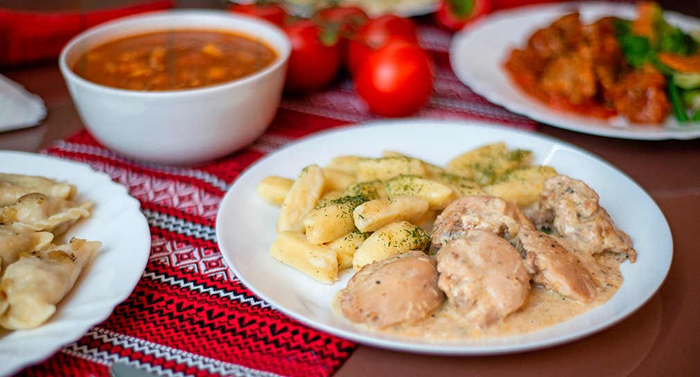 Kuchnia ukraińska, choć podobna do polskiej, posiada inne walory smakowe, dlatego tak bardzo smakuje osobom, które postanowiły u nas zjeść. Serwujemy potrawy tradycyjnej kuchni ukraińskiej: barszcz ukraiński czy różnorodne pierogi, ale również nasze menu zawiera mnóstwo potraw regionalnej kuchni lwowskiej. Wszystkie dania odpowiednio zbilansowane, których podstawą są wysokiej jakości produkty, przygotowywane ze szczególną dbałością właśnie po to, by zachowały jak najwięcej właściwości odżywczych. Dzięki temu każdy posiłek będzie nie tylko smaczny, ale i zdrowy. Pyszne obiady można nie tylko zjeść na miejscu, ale także zamówić na wynos czy z dostawą do domu lub biura. Wystarczy zadzwonić do restauracji czy złożyć zamówienie przez naszą stronę internetową, a my dowieziemy jedzenie do Państwa najszybciej jak to będzie możliwe. Chętnie zorganizujemy dla Państwa małe przyjęcie rodzinne czy imprezy okolicznościowe. Zapraszamy serdecznie!